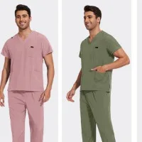 Erkekler ve kadınlar için v yaka kısa kollu baskılı fırçalayın üst, yaz cerrahi odası çabuk kuru çalışma üniforma seti