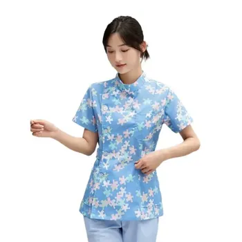 Hoa y tá đồng phục cho Phụ nữ mùa hè Ngắn Tay Áo hai mảnh thiết lập dài tay áo Y Tế bảo hộ lao động